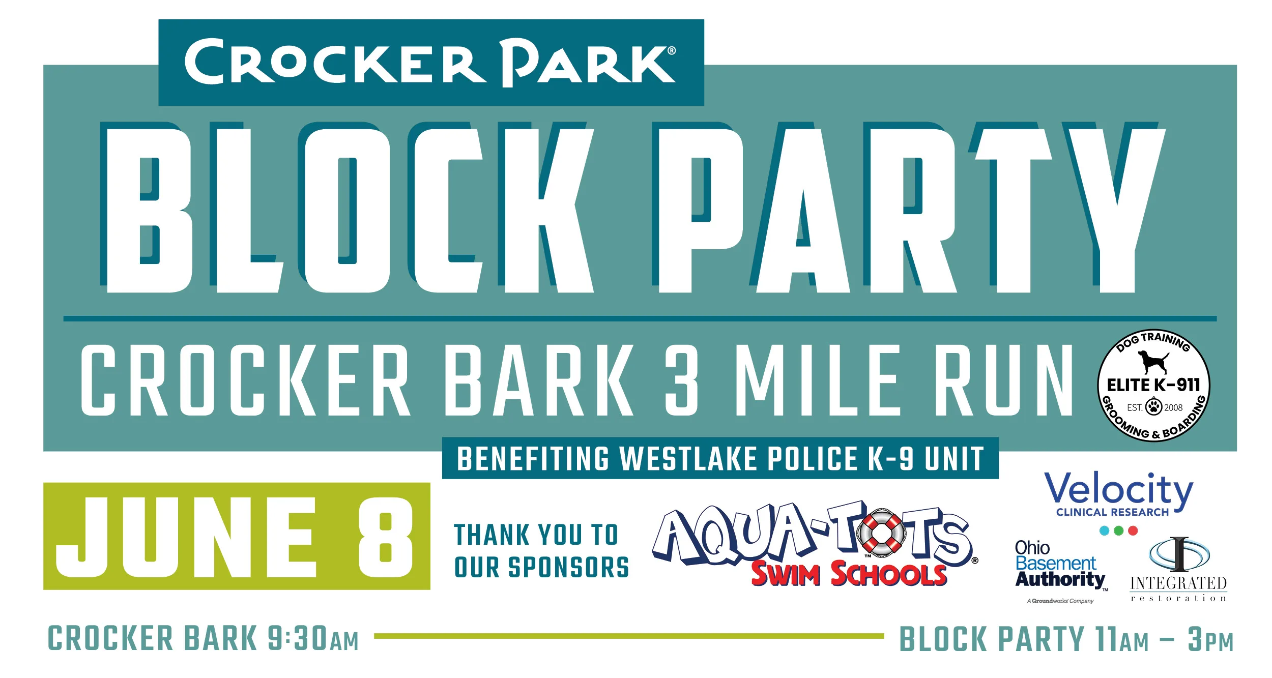 Sun, Jun 8thBring the whole family out as we kickoff the summer season in style at our annual Block Party and Crocker Bark 3 Mile Run & 1 mile walk!...